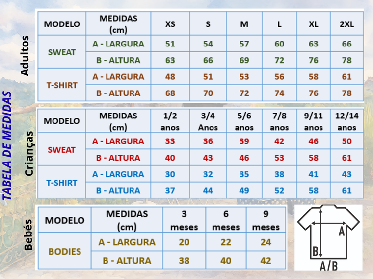 - Tamanhos para toda a família: dos mais pequeninos aos avós