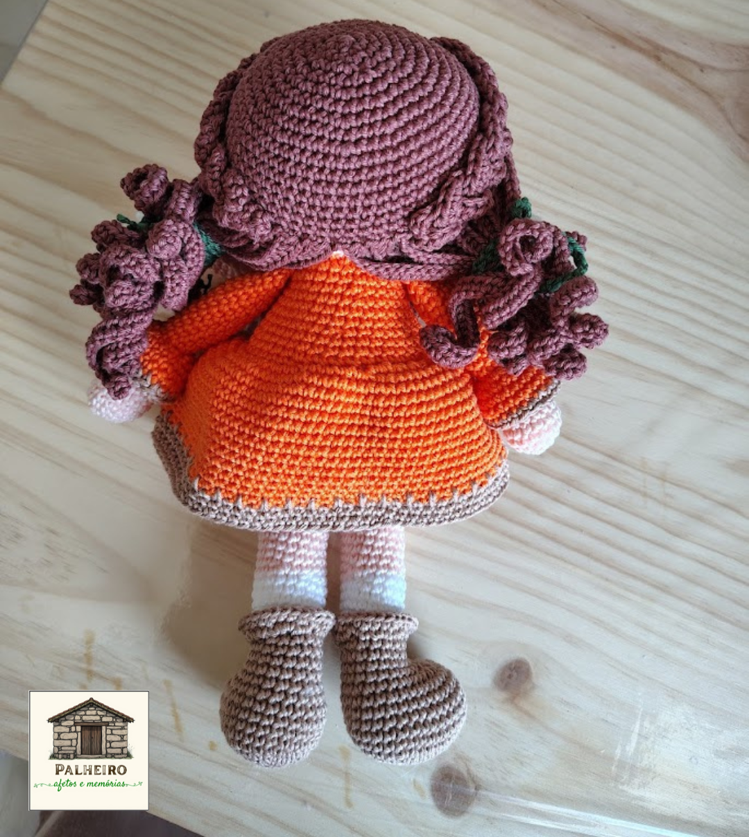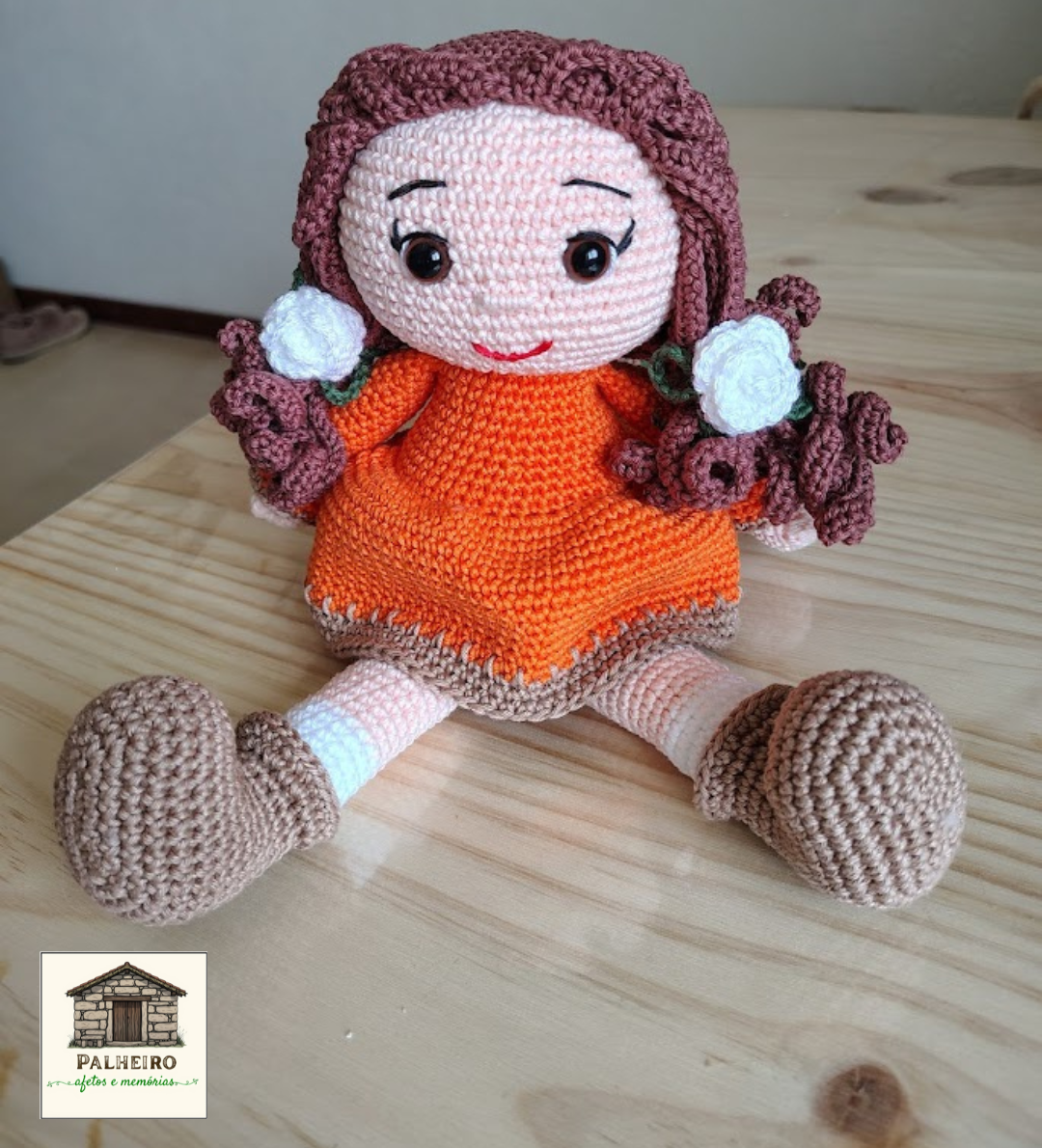 Esta boneca em croché é uma verdadeira expressão de ternura e arte. Com cerca de 32 cm de altura, ela encanta com o seu cabelo trançado, feito com detalhe e delicadeza, e um sorriso suave que transmite afeto. Cada peça é feita à mão, com atenção ao pormenor e materiais de qualidade, tornando-a única e especial.