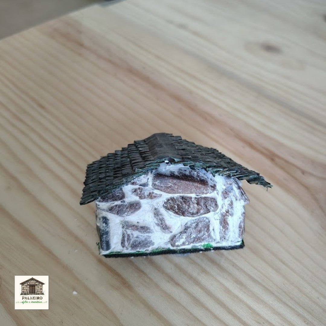 Esta casinha artesanal é uma verdadeira joia da coleção Casinhas em Miniatura: Arte Singular em Pedra. Com 5 cm de largura e 5 cm de altura, foi cuidadosamente construída à mão, combinando pedra natural e madeira para recriar o encanto das construções tradicionais da nossa região.