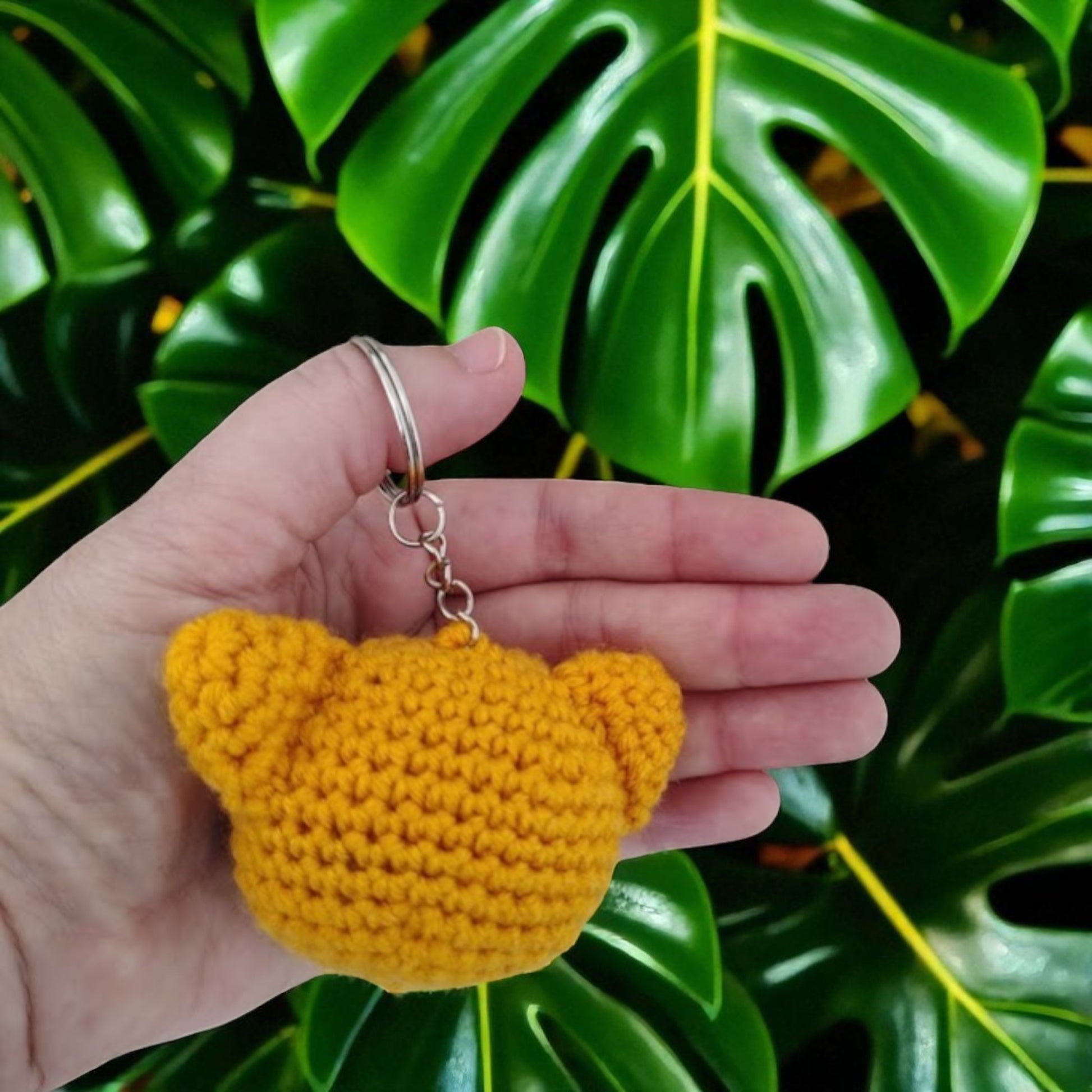 Dê um rugido de estilo ao seu catálogo com este irresistível chaveiro de tigre em amigurumi, feito à mão com fios suaves e detalhes encantadores. Com o corpo em amarelo ouro e listras pretas, este acessório artesanal é perfeito para quem adora animais com personalidade!
