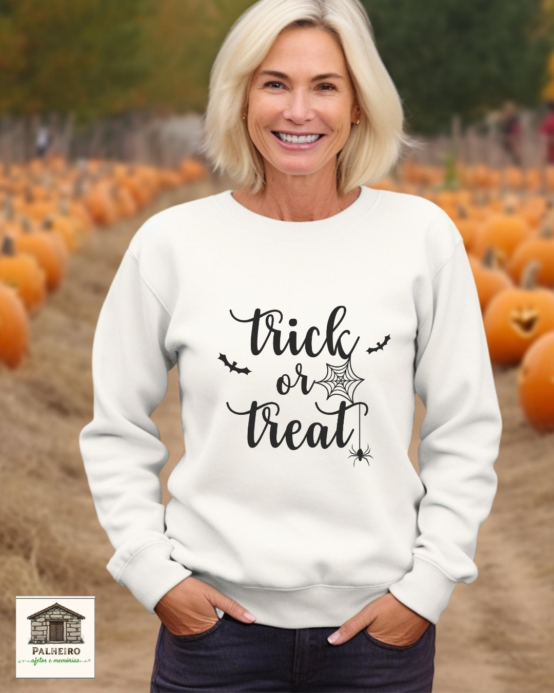 Da coleção Halloween, esta t-shirt celebra o espírito brincalhão da época com uma estampa simples e cheia de personalidade. Ao centro, a frase “Trick or Treat” surge em destaque, rodeada por pequenos morceguinhos travessos — o toque perfeito para quem vive o Halloween com alegria e afeto.